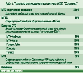 В начале года динамику акций телекоммуникационных компаний определяли два основных фактора: ожидание приватизации «Связьинвеста» в текущем году и IPO АФК «Система», крупнейшего финансово-промышленного холдинга, более 90% стоимости которого приходится на телекоммуникационные активы (табл. 1).