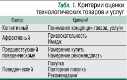 Критерии оценки технологических товаров и услуг приведены в табл. 1.