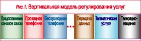 Согласно приведенному ранее комбинированному подходу к регулированию традиционные телефонные сервисы попадают в область вертикальной модели, а интернет-услуги – в область уровневой (рис. 4).