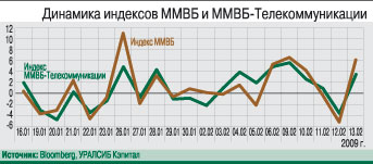 В начале 2009 г. отечественный рынок телекоммуникаций демонстрировал устойчивость к негативному макроэкономическому фону. В ожидании «сезона отчетности» за 2008 г. рынок отыгрывал новые назначения в совете директоров «Связьинвеста» и положительную динамику в претензиях АФК «Система» на контроль в башкирском ТЭКе.