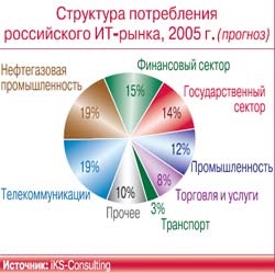 Не претерпела существенных изменений и отраслевая структура ИКТ-рынка. Крупнейшими потребителями ИКТ остаются предприятия связи, нефтегазового комплекса, финансовые организации и госсектор.