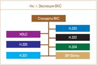 Собственно, история эволюции ВКС в том или ином виде повторяет историю эволюции телекоммуникаций в целом. Семейство протоколов, внутренних стандартов и рекомендаций ITU-T, используемых в видеоконференцсвязи на протяжении всего этапа развития отрасли, представлено на рис. 1.