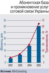 В 2005 г. количество пользователей сотовой связи в Украине выросло более чем вдвое и достигло 30,4 млн человек; проникновение мобильных услуг увеличилось с 29,4 до 64,6%. Из 16,5 млн новых пользователей больше всего было подключено в четвертом квартале – за этот период сотовыми абонентами стали более 7 млн человек, что составило 42% всех подключений за год. Абсолютный рекорд украинские сотовики установили в последнем месяце года, сделав мобильными абонентами еще 3,4 млн человек.