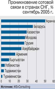 Рынок мобильной связи в странах СНГ развивается быстрее, чем фиксированной. По оценкам «iKS-Консалтинг», сегодня в этом регионе присутствует более 45 операторов сотовой связи, которые на конец третьего квартала 2005 г. в совокупности обслуживали 37,7 млнабонентов. С учетом России цифра увеличивается до 149,8 млн.