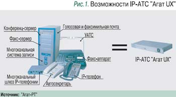 Часть интеллектуальных функций обработки вызовов (IP-телефония, голосовая почта и т.п.) «Агат UX» может брать на себя, снижая нагрузку на опорную станцию и фактически расширяя ее функциональность.