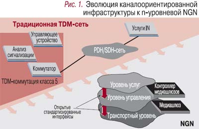 Для доступа к услугам с гарантированным качеством (рис. 1) основными являются нижние уровни NGN: транспортный и управления сетевыми ресурсами. Они должны отвечать требованиям конвергентности, сочетать особенности функционирования как в TDM-среде, так и в IP.