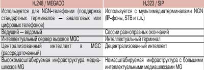 Сравнивая возможности протоколов, приходим к выводу, что архитектура MGC/MG с поддержкой H.248/MEGACO – идеальное решение для замены коммутаторов (классы 4 и 5) в фиксированных сетях, так как не требует замены терминалов на модели с поддержкой H.323/SIP.