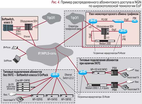 Тем не менее ведущие производители NGN-решений – Nortel и Siemens – остаются сторонниками специализированных решений, обоснованно полагая, что универсальная платформа доступа малоэффективна при традиционной иерархии сетей с высокой концентрацией аналоговых абонентских портов. Линейка их оборудования – медиашлюзы MG9000 (Nortel) и hiG 1600 (Siemens) – предусматривает выносы номерной емкости по технологии VoIP.