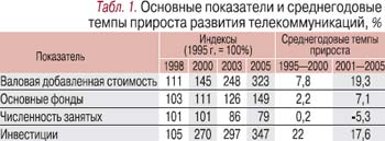 Совершенствование технической базы отрасли и рост капиталовооруженности стали главными факторами повышения ее производительности. Не относясь к наукопроизводящим отраслям, российские телекоммуникации используют новейшие достижения мирового технического прогресса и не скупятся на дорогие технологии, позволяющие автоматизировать внутрихозяйственную деятельность и достойно обслуживать потребителей своего продукта (табл. 1).