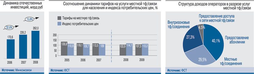 Еще более по сравнению с 2007 г. замедлился прирост телефонной плотности фиксированной связи – плюс 0,5 пункта, до 32,5 ТА на 100 человек, против 0,8 и 1,2 пункта соответственно в 2007 и 2006 гг. Работой компаний традиционной фиксированной связи «наверху» явно недовольны, отмечены проявившиеся в кризис «системные дефекты».