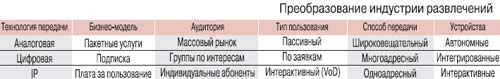 Что касается последнего фактора, то собственно технология передачи видео по широкополосным сетям развивается с 90-х годов и год от года укрепляет свои позиции вследствие все большей «оцифровки» видеоматериалов, совершенствования взаимодействия между конструктивными блоками, все более интенсивного использования IP-сетей и Ethernet. А последние разработки технологий доступа и агрегирования на базе Ethernet и IP, наряду с экономически эффективной транспортировкой данных по оптическим линиям связи, позволили сервис-провайдерам задуматься о массовом охвате рынков.