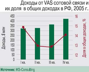 * Цифра будет еще скромнее, если следовать официальным данным операторов. В 2005 г. некоторые компании изменили методику учета доходов от VAS, исключив доходы контент-провайдеров.