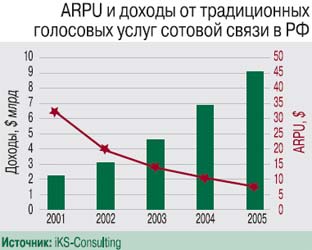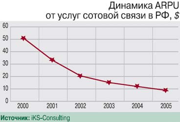 По предварительным итогам, ARPU в России снизился в течение 2005 г. на 26%, до $8,8, т.е. темпы падения этого показателя оказались даже выше, чем зафиксированный в 2004 г. 21%. А в целом за последние пять лет средний счет на одного абонента уменьшился на 83%. Нарастание нежелательной тенденции привело к тому, что все наконец заговорили о необходимости активизации усилий российскими операторами по стабилизации ARPU. Обеспокоенность рынка этой проблемой наглядно демонстрирует реакция инвесторов на неожиданно низкий показатель ARPU компании МТС за 3-й квартал 2005 г.: за два часа торгов на Нью-Йоркской фондовой бирже после объявления финансовых результатов котировки акций оператора упали на 10,5%.