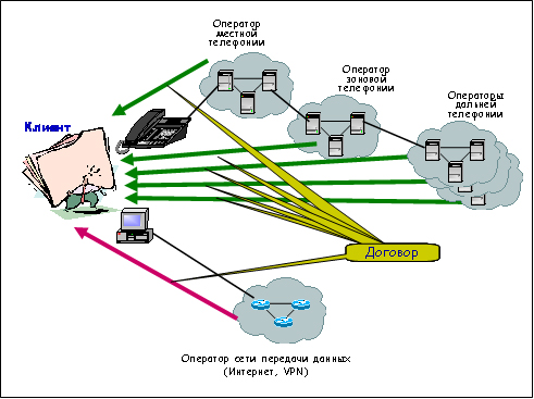 Рис. 1. Сегодняшняя схема договорных отношений (фиксированная связь)