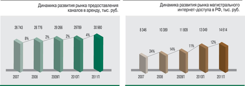 Таким образом, совершенно очевидно, что у российского рынка аренды каналов и магистрального интернет-доступа еще есть немалый потенциал. По прогнозам, рынок предоставления каналов в аренду в ближайшие три года будет расти со среднегодовыми темпами в 5%.