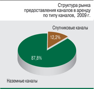 Сегмент аренды каналов во II квартале 2009 г. также продемонстрировал отрицательную динамику. По сравнению с I кварталом его объем сократился почти на 8%. Тем не менее по итогам первого полугодия общий объем рынка аренды наземных и спутниковых каналов превысил 14,9 млрд руб., что на 1% меньше по сравнению с аналогичным периодом 2008 г.