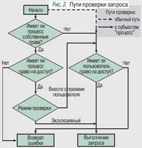 - для процессов без учета прав пользователей (эксклюзивный режим обработки запросов процессов: доступ к объекту разрешен, если он разрешен процессу);