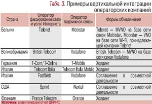 Впрочем, не всегда союз операторских компаний столь тесен, как в холдинге (табл. 3).