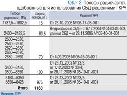 Настоящим хитом конференции, опять же по российской традиции, стало выступление секретаря ГКРЧ А. Стадинчука. Он не только ознакомил присутствующих с последними решениями регулятора в области распределения спектра и правилами получения разрешений для развертывания фиксированных сетей BWA, но и наконец-то назвал реальные (соответствующие наличествующему на рынке оборудованию) полосы частот (табл. 2). Что же касается мобильности, то А. Стадинчук озвучил официальную точку зрения: «когда появится оборудование, тогда и будем рассматривать процедуры назначений и правила», а пока «места под солнцем» для него в Таблице распределения не нашлось.