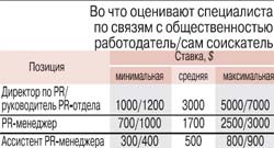 Наиболее востребованы PR-менеджеры, далее – руководители PR-служб, PRдиректора, менеджеры по рекламе и PR. Две трети нанимателей хотят работать с сотрудниками в возрасте от 22 до 35 лет. Однозначно требуется высшее образование; профильное (журналистика и PR) желательно, но базовое техническое при опыте PR-работы может оказаться преимуществом. Пол соискателя обычно не важен.