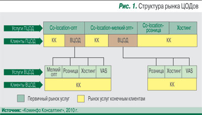 Таким образом, рынок услуг ЦОДов имеет два уровня (рис. 1):