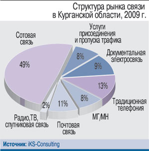 Сотовый рынок Курганской области делят между собой четыре оператора – федеральная «большая тройка» и местный филиал «Уралсвязьинформа», работающий под брендом Utel. Первенствует среди них «ВымпелКом» – ему принадлежит почти половина абонентов. Сеть 3G в Кургане оператор запустил еще в конце 2008 г. Основной конкурент – МТС – его примеру последовал лишь год спустя. Другие два участника ход в 3G-игре пока пропускают: «Уралсвязьинформ» не имеет лицензии на строительство сетей третьего поколения, а «МегаФон», видимо, сосредоточил свои усилия на более богатых регионах Урала. Тем не менее даже Utel, несмотря на отсутствие поддержки 3G, предложил своим абонентам тарифный план с безлимитным мобильным доступом в Интернет всего за 299 руб. в месяц. Высокий уровень конкуренции побуждает сотовиков действовать активно и в сегменте голосовой связи. Хотя откровенного демпинга не происходит, но новые тарифы и тарифные опции игроки выводят на рынок регулярно.