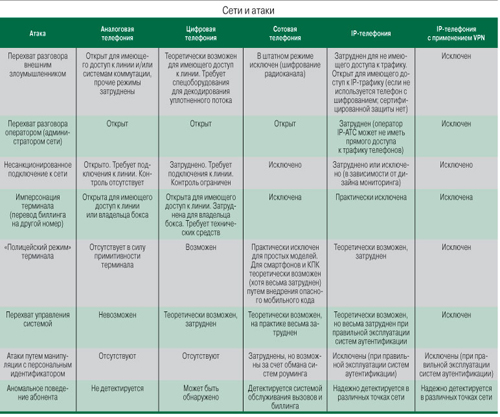 Итак, мы увидели, что сети традиционной телефонии и IP-телефонии – это физически и логически очень разные объекты. Атакуют в них разнородные ресурсы, и типы атак существенно разнятся. Что может дать их сравнение?