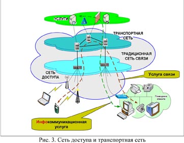 Характерной особенностью концепции NGN/IMS является отсутствие внутренней иерархии в сети связи, аналогичной классическим телефонным сетям. То есть в перспективной сети привычное деление местная сеть – зоновая – междугородная уже не будет иметь место. Граница, хотя и условная, но технически оправданная, проходит по стыку сетей доступа и транспортных, все остальное определяется технико-экономическими соображениями конкретного оператора связи (рис. 3). Из этого вытекает, что, поскольку транспортная сеть того или иного оператора с внешней стороны является «черным ящиком», «облаком», осуществляющим пропуск трафика, то существующая система расчетов за местный, внутризоновый и междугородный трафик в сегодняшнем виде не соответствует ни технической, ни экономической составляющей построения сетей связи. Количество вариантов расчета за трафик должно сокращаться.