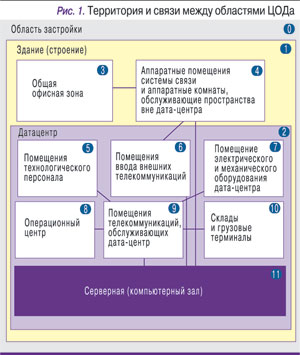 Область 1 – здание (строение) или группа зданий, специально спроектированных и построенных для размещения ЦОДа.