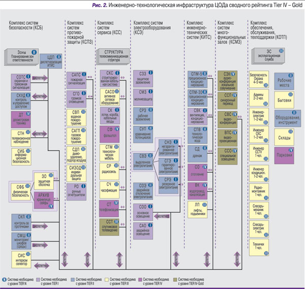 В заключение отметим, что состав и практическое воплощение систем ЦОДа – это всегда некий компромисс между рамками нормативов, реальными условиями на объекте и возможностями инвестора. Взяв за основу приведенную на рис. 2 структуру и вычеркнув системы, которые не планируется устанавливать, инвестор может без посторонней помощи примерно оценить соответствие своих возможностей желаемому уровню надежности функционирования ЦОДа.