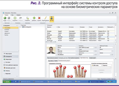 Второй вариант: комплексная система имеет единый программный интерфейс для СКД и биометрической подсистемы. Такой вариант удобнее и потому предпочтительнее. Например, при добавлении сотрудника в систему все операции по вводу пользовательской информации и биометрических шаблонов, назначению уровней доступа, добавлению фотографий и т.п. выполняются из одного интерфейсного окна.