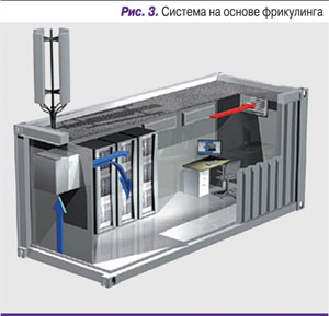Наряду с dx-решениями для поддержания микроклимата в помещениях базовых станций сегодня начинают внедряться системы, использующие для охлаждения телекоммуникационного оборудования наружный воздух (фрикулинг, рис. 3).