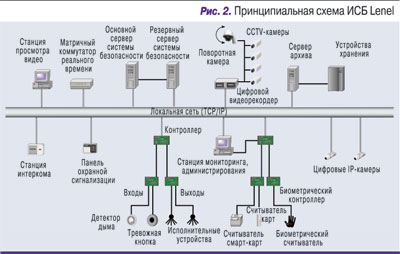 Главная особенность системы безопасности Lenel (рис. 2) – то, что она изначально формировалась как интегрированная, т.е. под фирменные контроллеры и устройства создавалась программная оболочка. С точки зрения интеграции она является наиболее проработанной из всех существующих на рынке, так как обладает широчайшим инструментарием в виде программных интерфейсов (API, OPC, SNMP и др.).