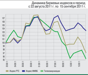 Продолжили корректировку вниз и обыкновенные акции МТС. В августе под давлением негативного внешнего фона котировки акций оператора даже пробили нижнюю границу поддержки в 230 руб., опустившись по итогам торгов 15 сентября к отметке 205,66 руб. (–5,23% за месяц). Причинами слабой динамики компании стала публикация нейтральной отчетности по US GAAP за II квартал 2011 г., а также неопределенность относительно дальнейшей судьбы «МТС-Беларусь». Доля в 51% акций компании, принадлежащая правительству Беларуси, была оценена Минском в $1 млрд, однако МТС заявила о готовности выкупить пакет по разумной цене – в противном случае российский оператор сам готов продать свою 49%-ную долю в «МТС-Беларуси» «по сопоставимой цене».