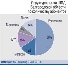 У рынка Белгородской области неплохой потенциал: по итогам 9 месяцев 2011 г. уровень проникновения ШПД составил лишь 25%, региональному рынку есть куда расти.