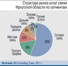 В сегменте фиксированной связи сети «Ростелекома» принадлежат 78% установленных в регионе квартирных телефонных аппаратов (464 тыс. по итогам 2011 г.). Крупнейший альтернативный оператор проводной телефонии – компания «Сибтелеком», работающая в Иркутске, Усолье-Сибирском, Свирске, в поселках Молодежный и Ново-Иркутский. В Иркутске оператор обслуживает порядка 32 тыс. квартирных абонентов. Компания также входит в Top-5 интернет-провайдеров области.