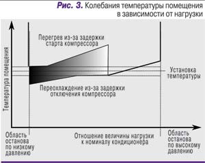 В случае небольшого помещения с заметной нагрузкой и при наличии только одного кондиционера ситуация на практике может выглядеть так, как изображено на рис. 3.