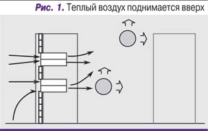 На практике же подъем горячего воздуха еще меньше. Во-первых, при мало-мальски разумной расстановке оборудования горячий воздух выбрасывается не в зону холодного воздуха, а в такой же горячий, что уменьшает разницу плотностей и соответственно подъемную силу. Во-вторых, в реальности конвективный подъем значительно замедляется из-за возникающих сил трения. Так что его скорость меньше примерно на порядок.