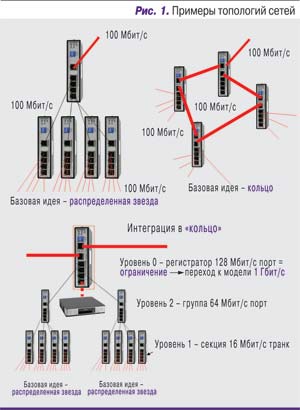 Появление высоконадежных коммутаторов с поддержкой технологии кольца, с быстрым (не более 10–30 мс) восстановлением и с пропускной способностью не менее 1 Гбит/с существенно упрощает и оптимизирует топологию сети. Такие коммутаторы, имеющие приемлемую стоимость, сейчас выпускает ряд компаний, например LanTech, Moxa, Hirschmann, GE/UTC, ComNet и др. Эти производители поставляют активное сетевое оборудование в том числе в защищенном от низких температур (Industrial) и даже во всепогодном (IP68 или M12) исполнении.