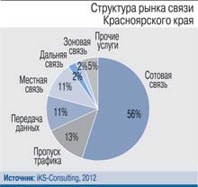 По объему телеком-рынка (22,6 млрд руб. в 2012 г.) Красноярский край – второй среди регионов Сибири и 11-й в России. Динамика региональной выручки от услуг связи (7%) сопоставима со среднероссийской (7,5%).