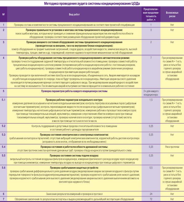 Необходимо подчеркнуть, что проведение аудита инженерных систем не должно влиять на функционирование ЦОДа. Любые работы, влияющие на производительность сервисов ЦОДа, должны быть согласованы заранее и указаны в методике проведения обследования для каждой из аудируемых инженерных систем. Этот момент должен быть заказчиком заранее оговорен.