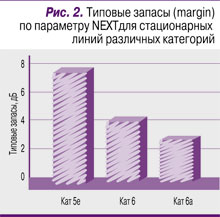 Внешнее проявление этой тенденции – снижение энергетического потенциала волоконно-оптических сетевых интерфейсов, увеличение количества контролируемых параметров симметричных трактов и уменьшение запасов по наиболее критичным из них (пример для параметра NEXT – рис. 2).