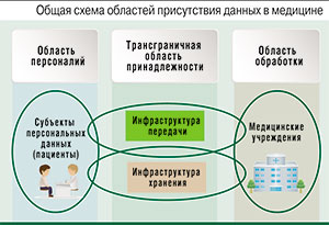 Причем данные могут формироваться в любой из областей и, в общем, никогда нельзя точно провести границу между областями их нахождения: они фактически являются взаимопроникающими. Например, если пациент хранит результаты анализов, полученных из медицинского учреждения, в смартфоне (да еще отправляет их куда-либо, например, с помощью Skype), то можно точно сказать: они принадлежат уже не только информационной инфраструктуре медицинских учреждений.