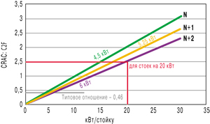 холодопроизводительность CRAC = число ИТ-стоек x 1 кВт/стойку.
