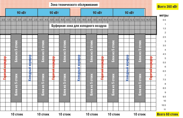 Рис. 4. Стандартная установка стоек по схеме с горячими и холодными коридорами |