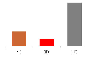 - низкий уровень качества основных 3D продуктов, с малой долей эффектов 3D, что приводит к профанации самой идеи. 4К – это HDTV в 2005 году. Будущее за 4К и 8К. Производители оборудования это никак не пропустят. Производитель основных девайсов – это индикатор массового спроса и моментов получения своей максимальной маржи»