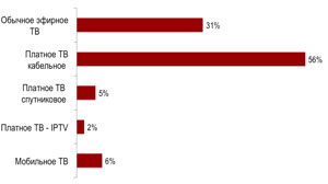Очевидно, что эволюция ТВ-технологий набирает обороты, но процесс этот протекает гораздо медленнее, чем представлялось 3-4 года назад, что и послужило одной из причин переноса полного отказа от аналоговой технологии вещания на конец 2018 г. Подтверждением тому, что это решение оправданно, является тот факт, что при гипотетической доступности цифрового эфирного вещания почти двум третям телевизионных домохозяйств России, реальное количество тех, кто пользуется цифровым эфиром, оценивается в чуть более 10% общей численности телевизионных домохозяйств: до сих пор сказывается отсутствие ресиверов и низкий процент обновления парка телевизоров.