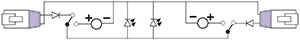 | Рис. 3. Упрощенная принципиальная схема цепей светодиодной подсветки вилок модульных разъемов с встроенным источником питания |