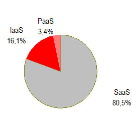 Ведущим сегментом российского рынка облачных сервисов является SaaS («ПО как сервис»): в 2015 г. на его долю приходилось 80,5% всего объема доходов от облачных услуг в стране. Доля IaaS («инфраструктура как сервис») составила 16,1%, а платформенных услуг (PaaS) – не более 3,4%. В течение последующих пяти лет доля IaaS, по прогнозам iKS-Consulting, увеличится до 25%, а SaaS соответственно уменьшится.