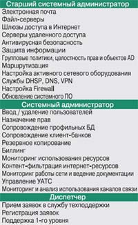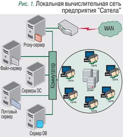 Рассмотрим крупную холдинговую компанию, специализирующуюся на продаже товаров народного потребления. Расширяя свой бизнес, руководство компании оформляет лицензию на право торговли на новых арендованных площадях, где будет 200 автоматизированных рабочих мест, – новое предприятие «Сатела» в составе холдинга. Характеристики локальной вычислительной сети предприятия (рис. 1): 200 пользователей, 6 серверов, 15 периферийных устройств, канал Интернета (2048 кбит/с), 20 городских телефонных линий, УАТС – 32 х 128. Сотрудники подразделения ИT, поддерживающего эту сеть, работают на полную ставку. Штат отдела в соответствии с методикой расчета ИT-персонала (рис. 2): один системный администратор и один сервисный инженер на 120 пользователей, а также программист «1С» и менеджер по материально-техническому обеспечению. Дополнительно предусмотрен кадровый резерв на случай отсутствия коголибо из штатных специалистов.
